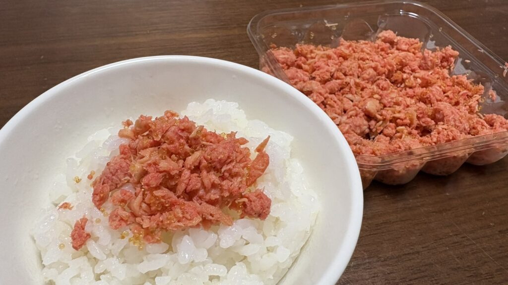 ↑【飯坂冨士商店様の天然紅鮭フレーク”紅っこちゃん”】