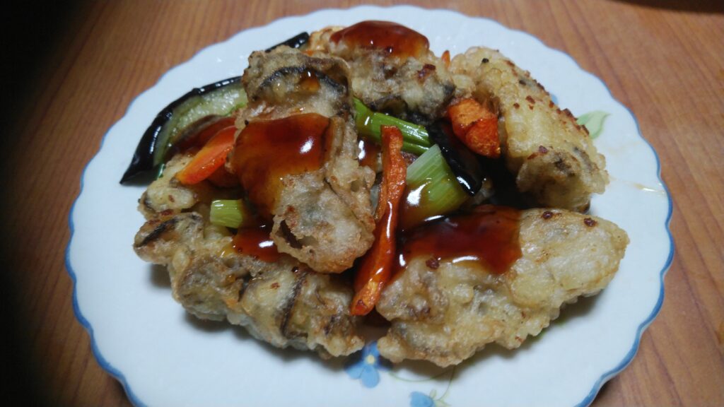 みなさん、牡蠣の黒酢あんかけを作ってみま